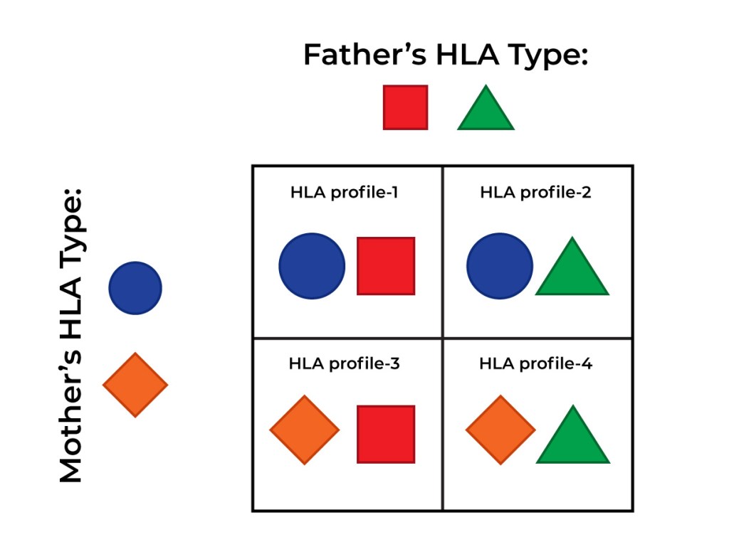 When looking for a genetically compatible match, we focus on a particular group of genes. The European Society for Blood and Marrow Transplantation explains that the ideal donor is an identical genetic match to the patient’s “HLA” genes. Blood cells critical to the immune system express two classes of HLA genes. A 2019 clinical update on genetic matching for stem cell transplants focuses closely on these HLA genes. The HLA Class 1 genes are expressed in every cell in our bodies. When considering donors, we look specifically at HLA-A, HLA-B, and HLA-C. The HLA Class 2 genes are the genes that are only expressed on important blood cells in our immune system. Here, we look for matches at HLA-DRB1, HLA-DQB1, and HLA-DPB1. The acronyms here are not nearly as important as what they signal: to find a compatible bone marrow donor, doctors have to focus closely on this small set of genes and hope for a match.